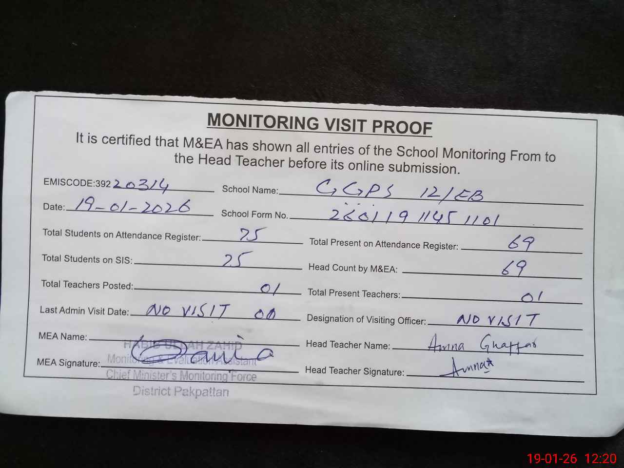 | EMIS Code: 39220314 | Name of School: GGPS 12 EB | |||