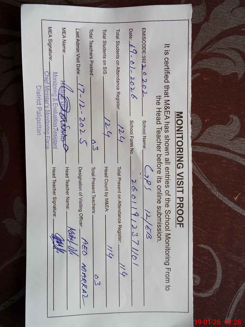 | EMIS Code: 39220202 | Name of School: GPS 12 EB P/O 10/E.B ARIF WALA | |||
