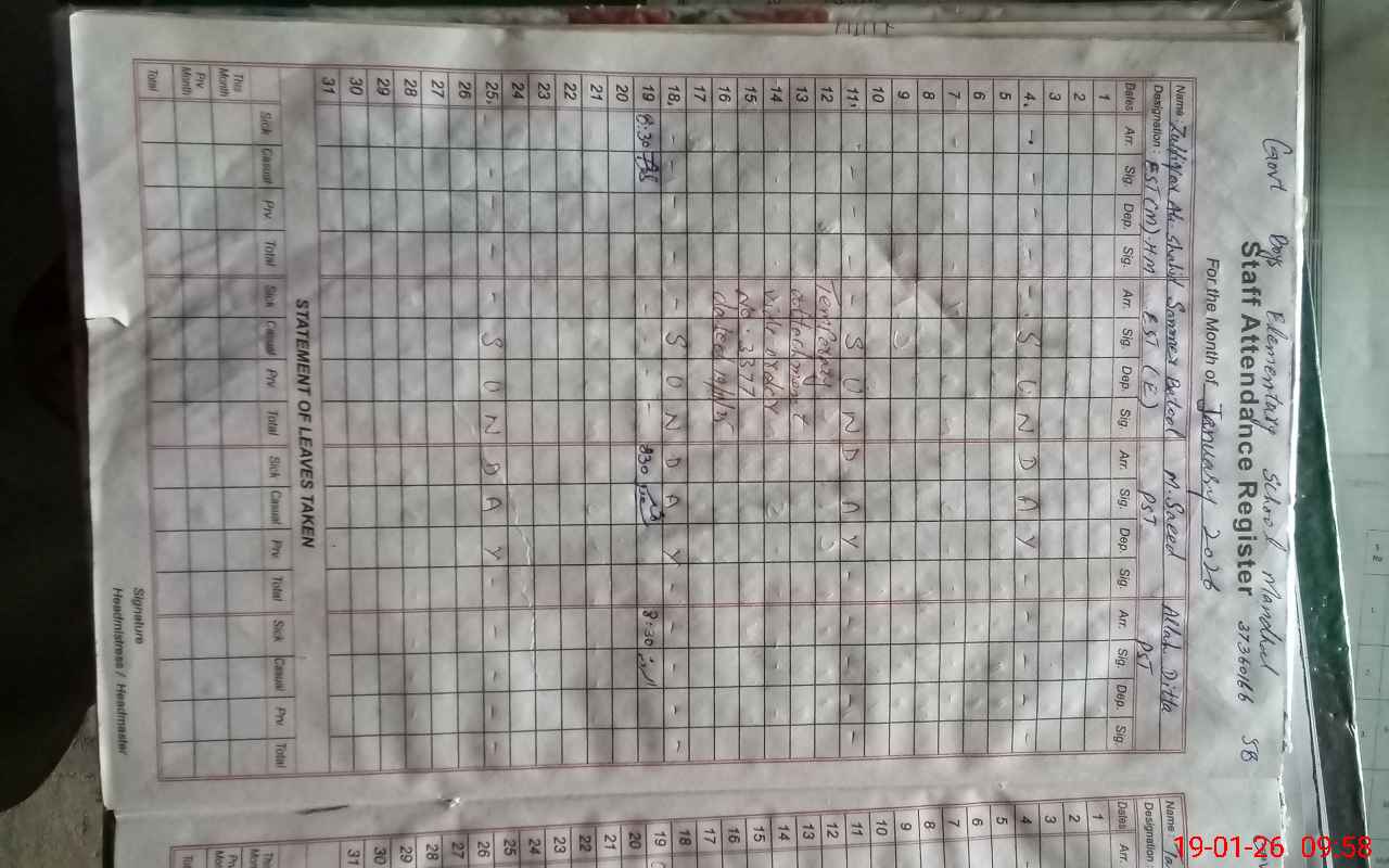 | Attendance Register | Head Teacher | MEA with School | Visit Proof |