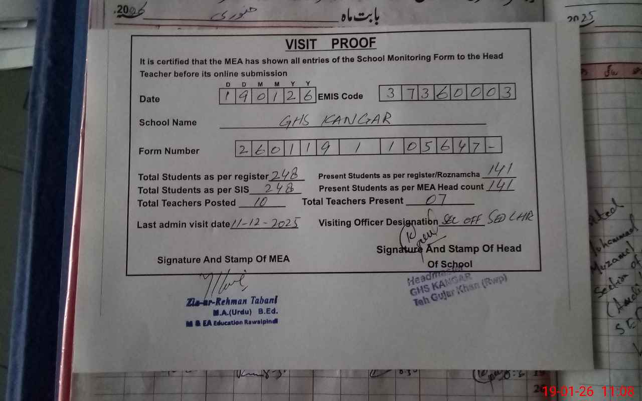 | EMIS Code: 37360003 | Name of School: GHS KANGAR | |||
