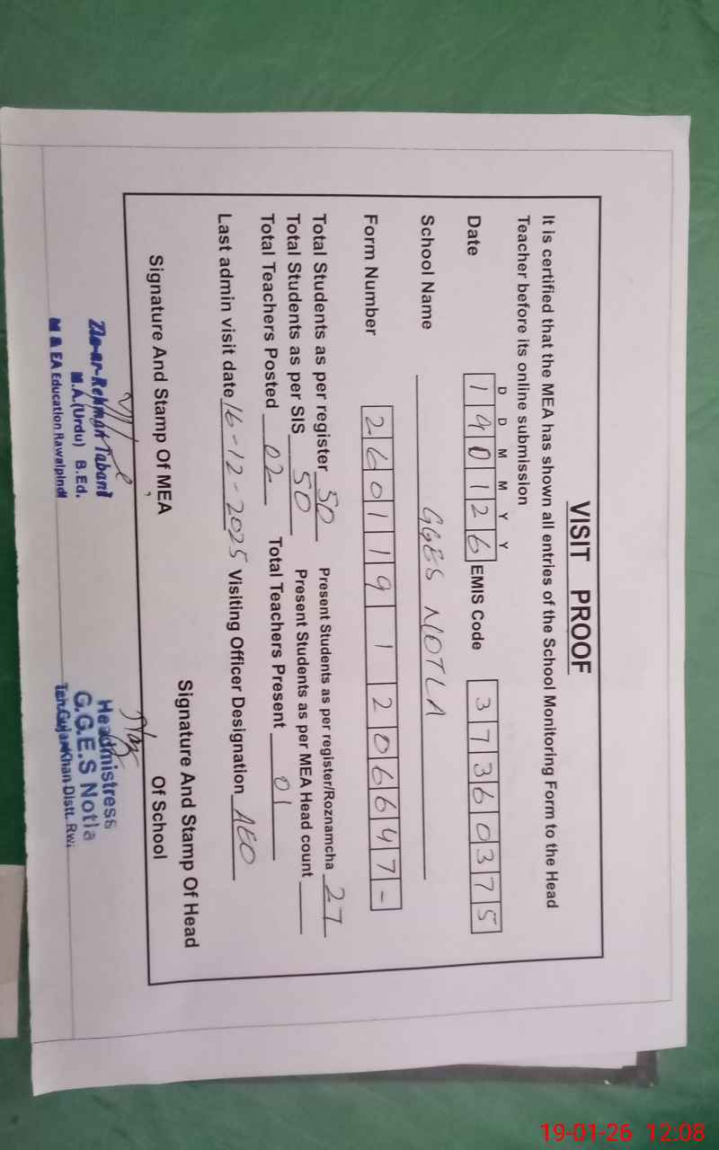 | EMIS Code: 37360375 | Name of School: GGES NOTLA | |||