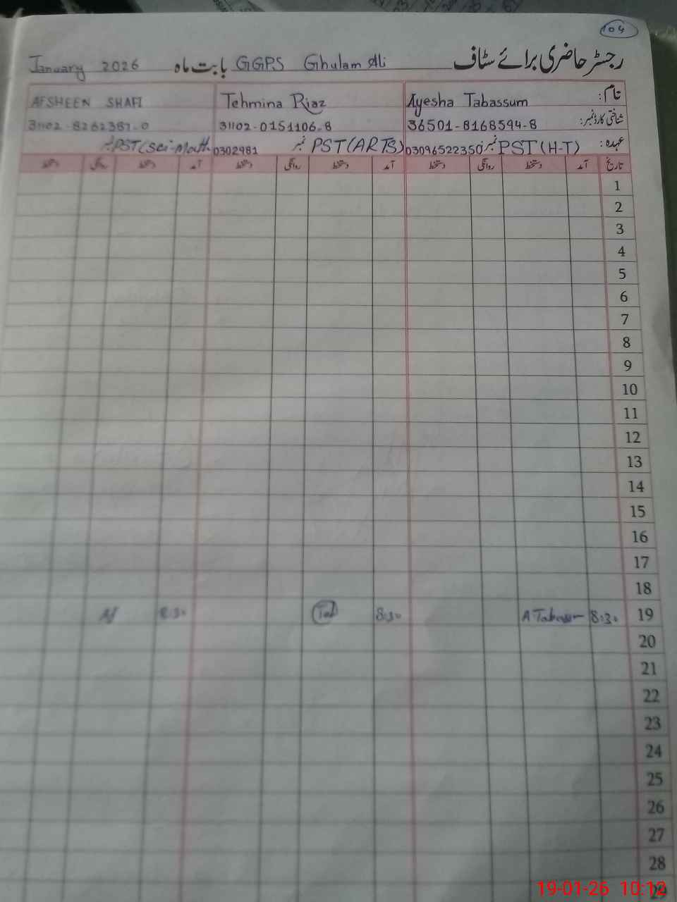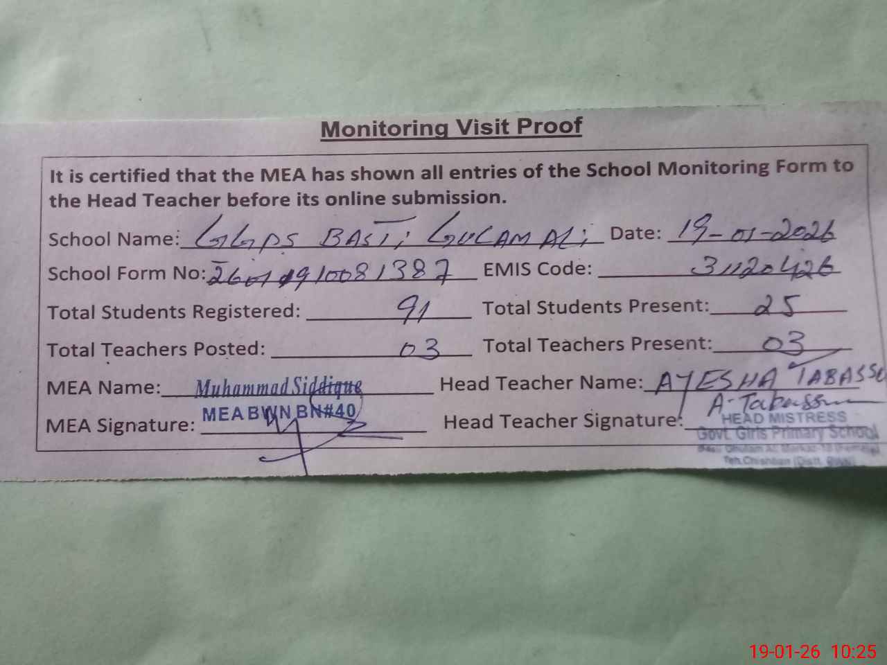 | EMIS Code: 31120426 | Name of School: GGPS BASTI GHULAM ALI | |||