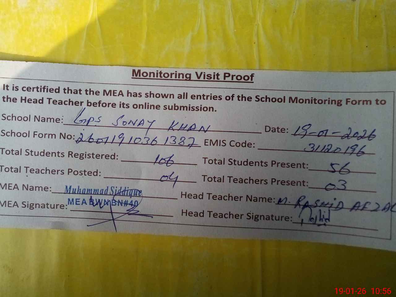 | EMIS Code: 31120196 | Name of School: GPS SONAY KHAN | |||