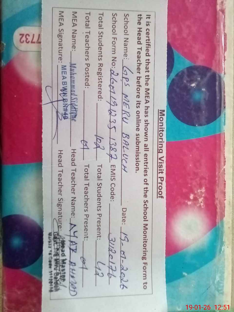 | EMIS Code: 31120176 | Name of School: GPS MERU BALUCH | |||