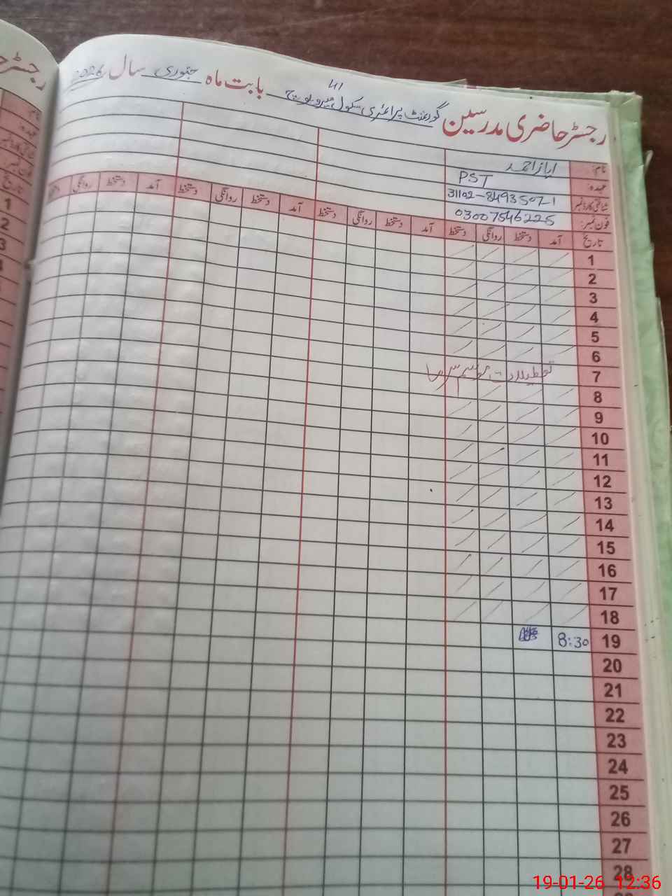 | Name: AY**** AH**** Designation: (School Headmaster's/Headmistress's) PST Phone/Cell Number: 03**** |