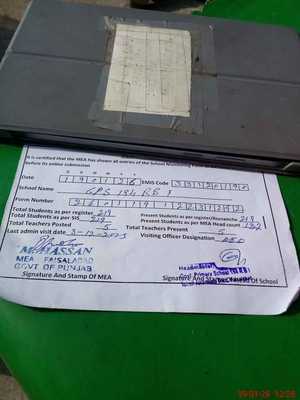 | Attendance Register | Head Teacher | MEA with School | Visit Proof |