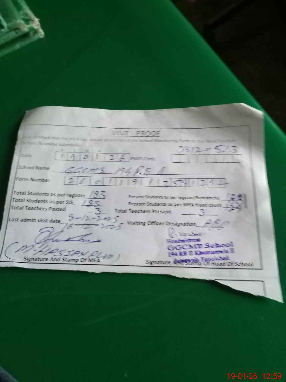 | Certified that this School was Inspected by the Undersigned MEA/DMO Today and the Information Stated Above is as Per Record. | |||||
