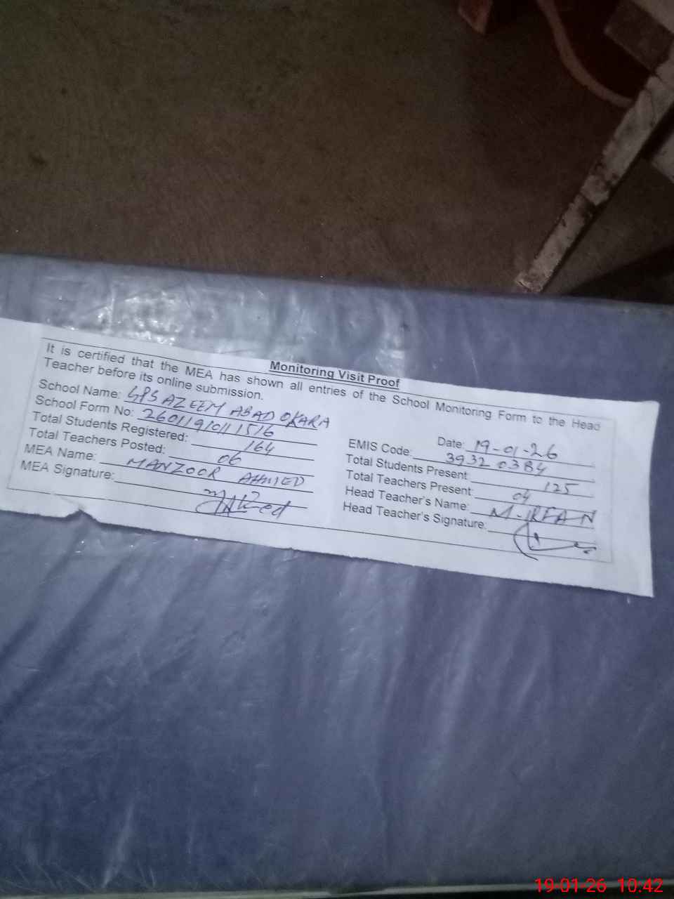 | EMIS Code: 39320384 | Name of School: GPS AZEEM ABAD , OKARA | |||