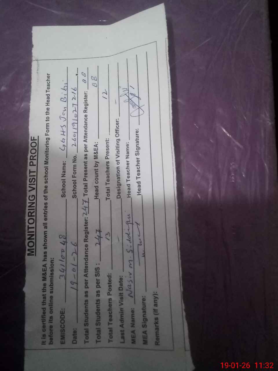 | EMIS Code: 34110048 | Name of School: GGHS JAN BIBI | |||