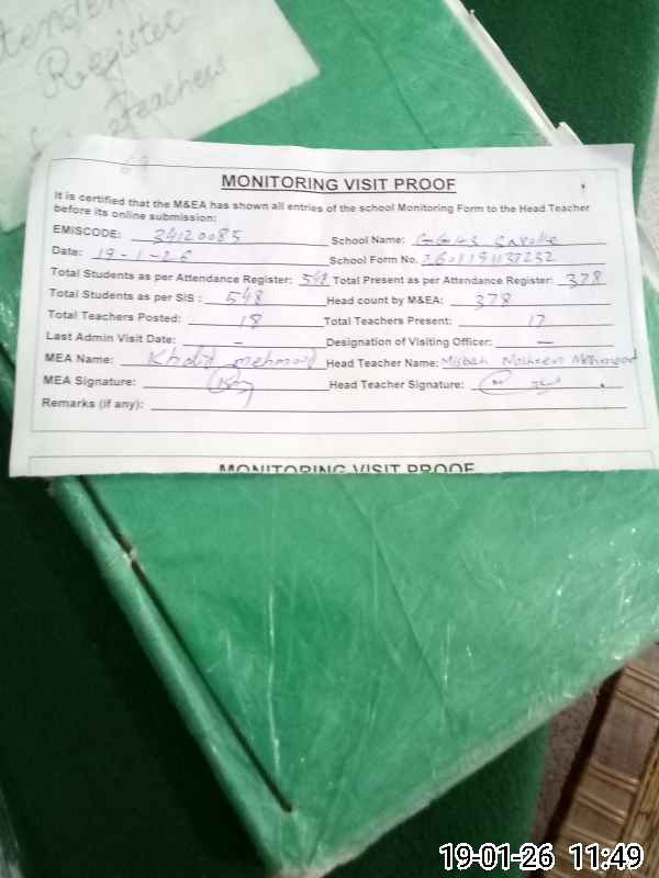 | Attendance Register | Head Teacher | MEA with School | Visit Proof |