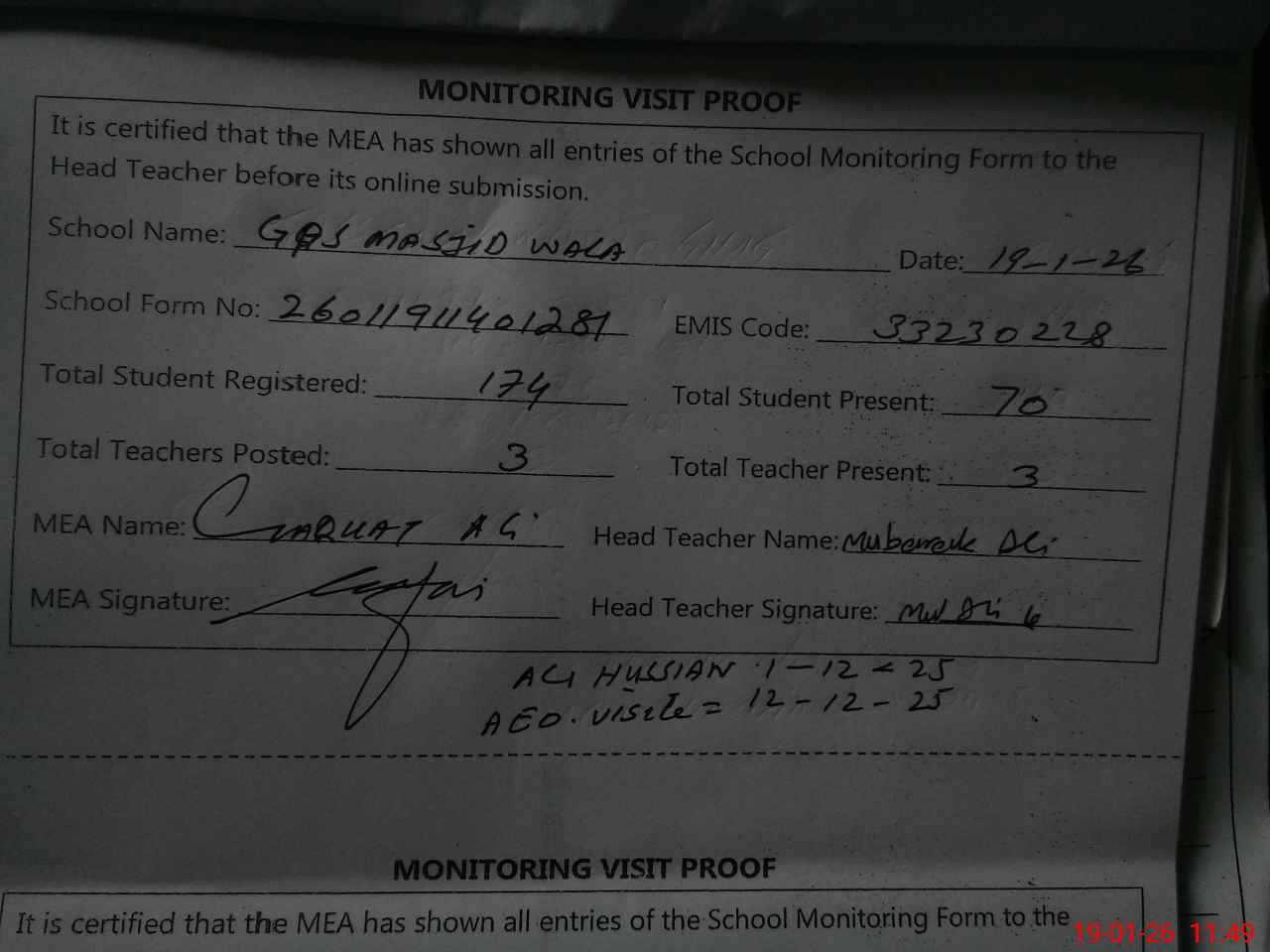 | EMIS Code: 33230228 | Name of School: GPS MASJID WALA | |||