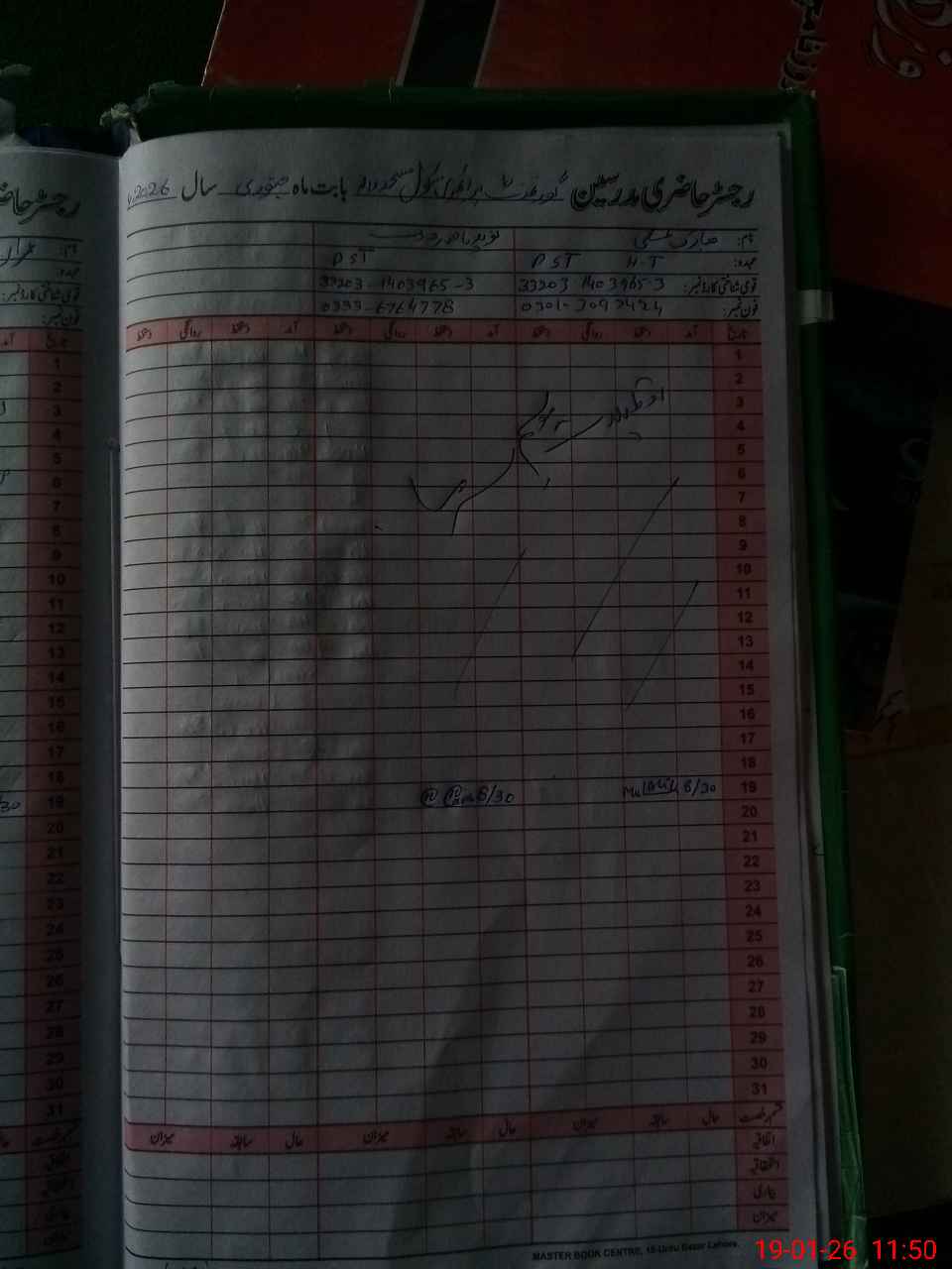 | Name: MU**** AL**** Designation: (School Headmaster's/Headmistress's) PST Phone/Cell Number: 03**** |