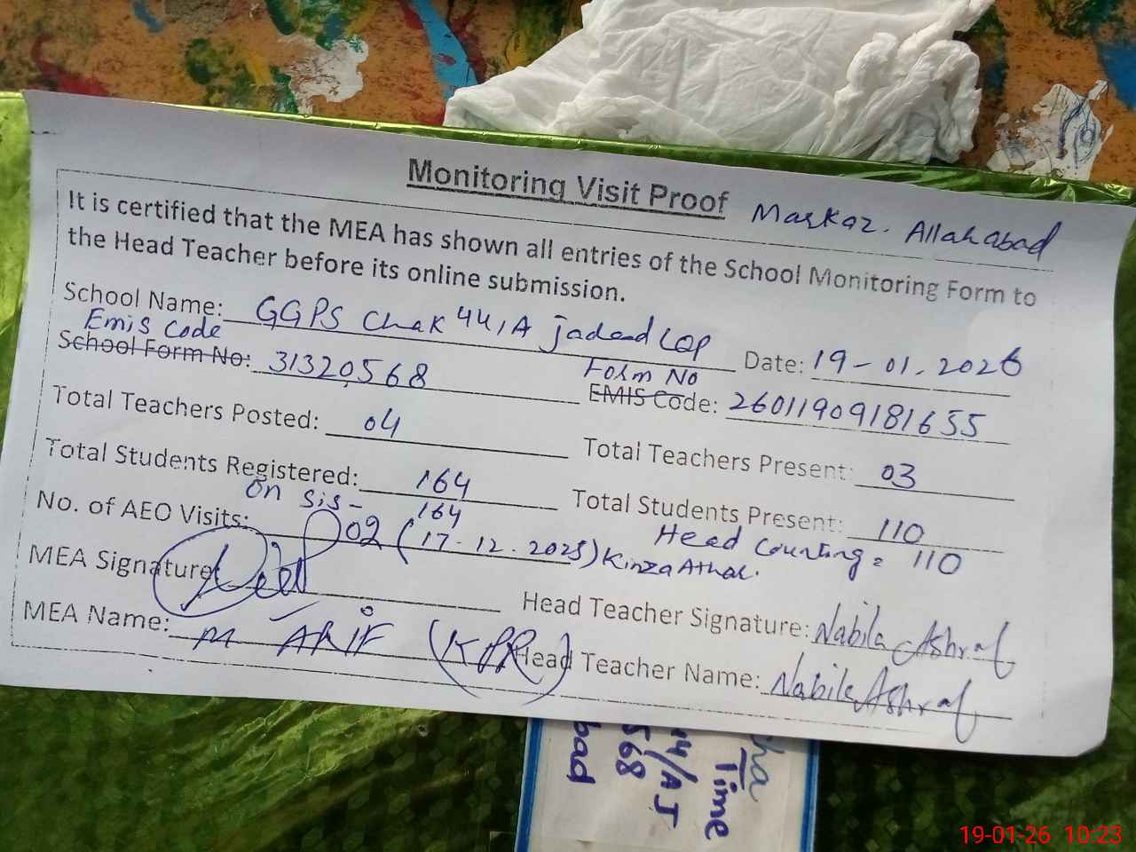 | EMIS Code: 31320568 | Name of School: GGPS CHAK 44/A JADEED | |||