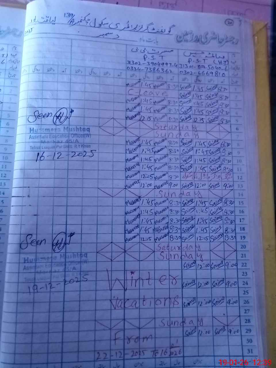 | District: RAHIMYAR KHAN | Tehsil: LIAQATPUR | Markaz: 45/A-FEMALE | Level: Primary | |