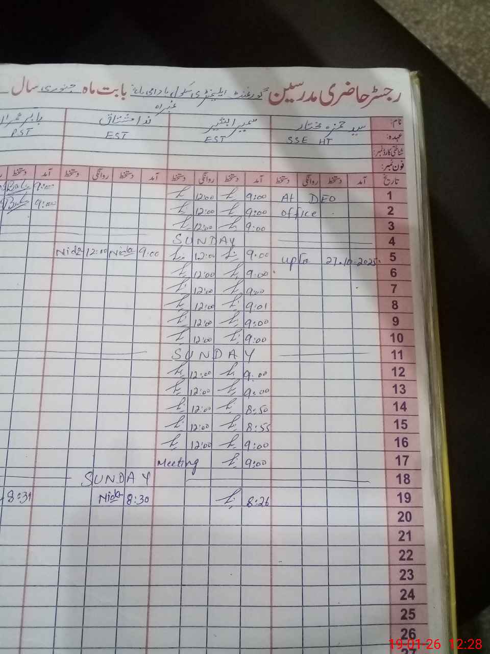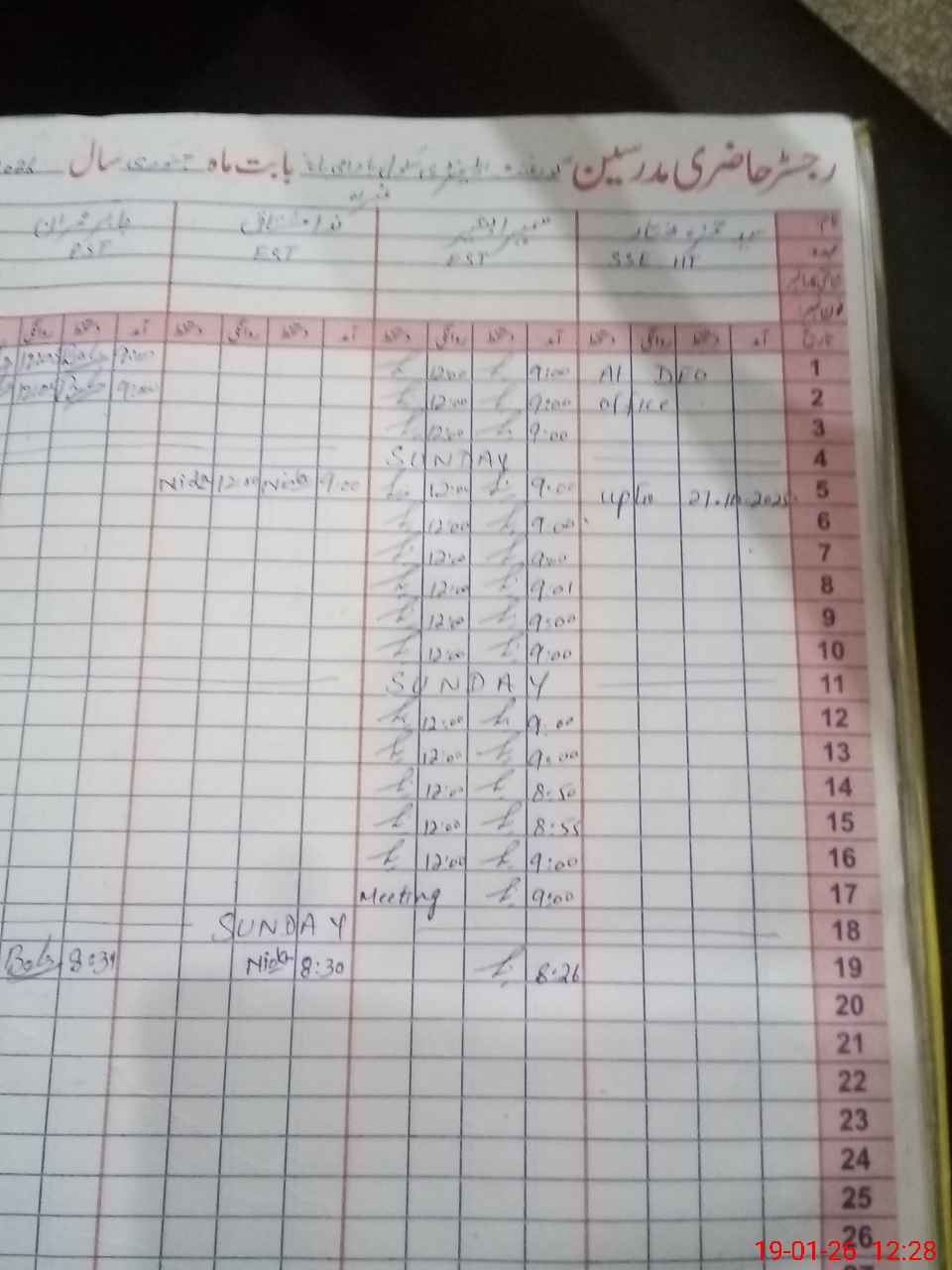 | 34**** | Sy**** Ha**** Mu**** | SSE Computer Science | Contract | 0 | 0 | 0 | 0 | 0 | 0 | 0 | 0 | 0 | Absent (Un-Authorized) |