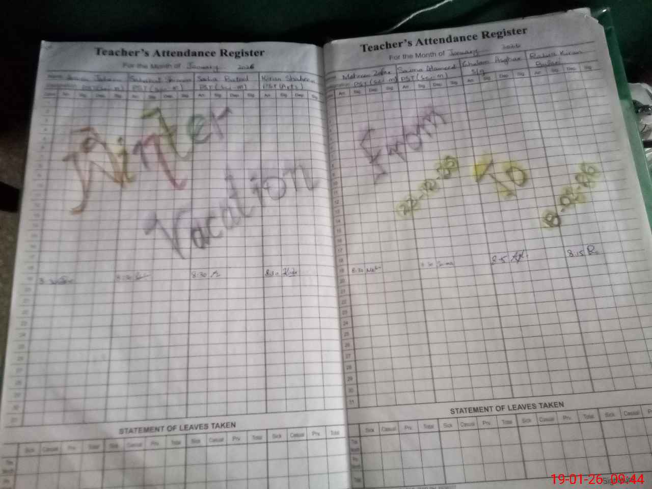 | Leave | Duty | Absent | Maternity | Medical | Ex- Pak |