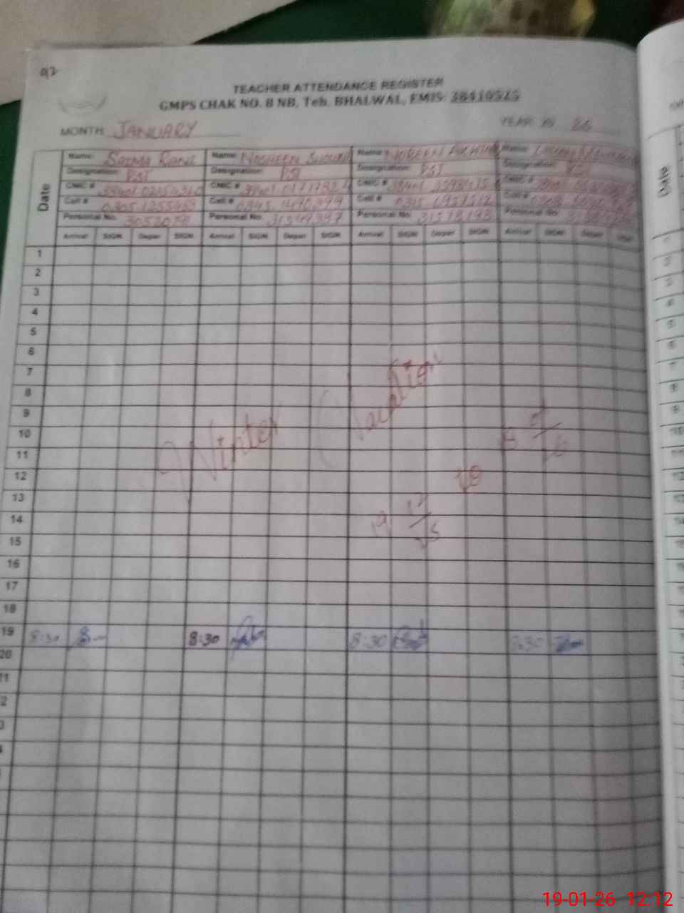 | Name: Sa**** Ra**** Designation: (School Headmaster's/Headmistress's) PST Phone/Cell Number: 03**** |