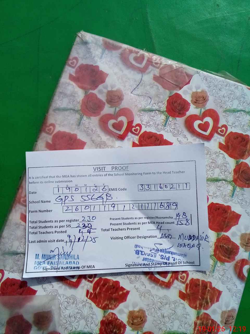 | Attendance Register | Head Teacher | MEA with School | Visit Proof |