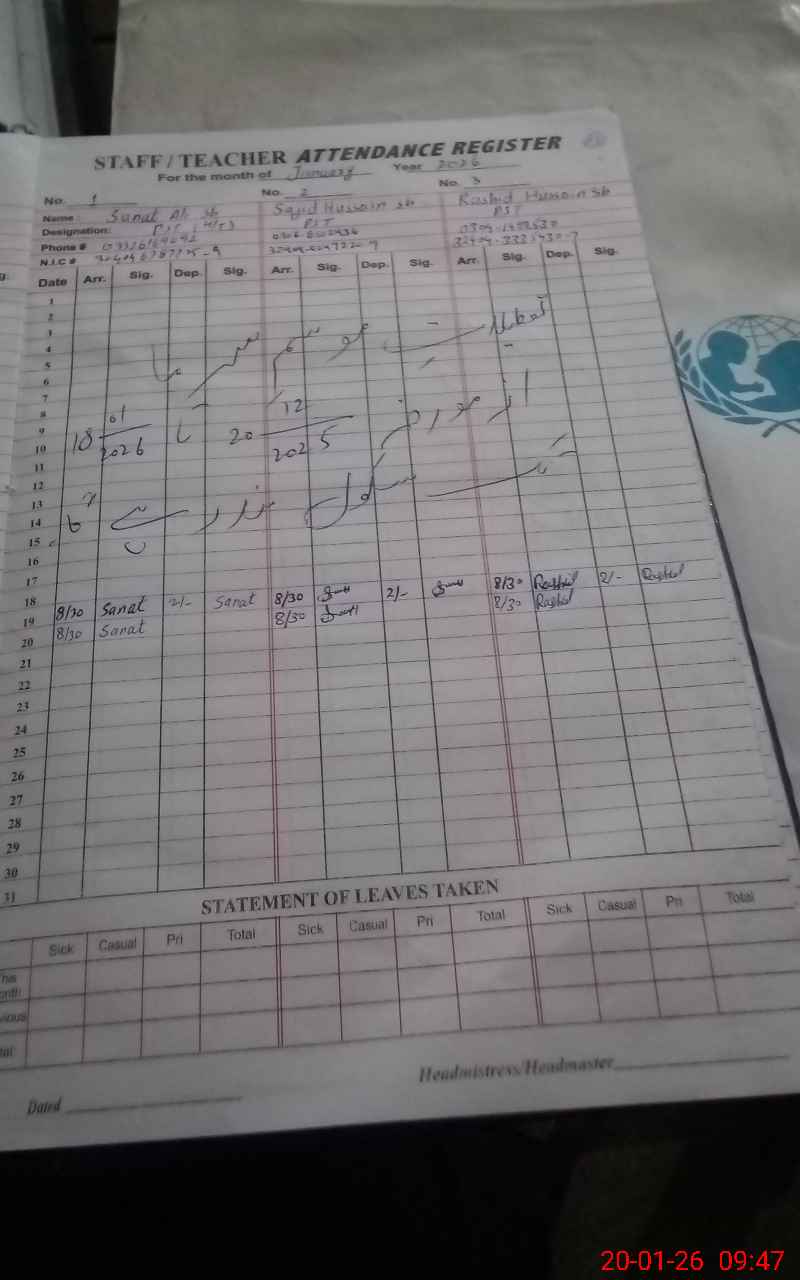 | Name: Sa**** Al**** Designation: (School Headmaster's/Headmistress's) PST Head Phone/Cell Number: 03**** |