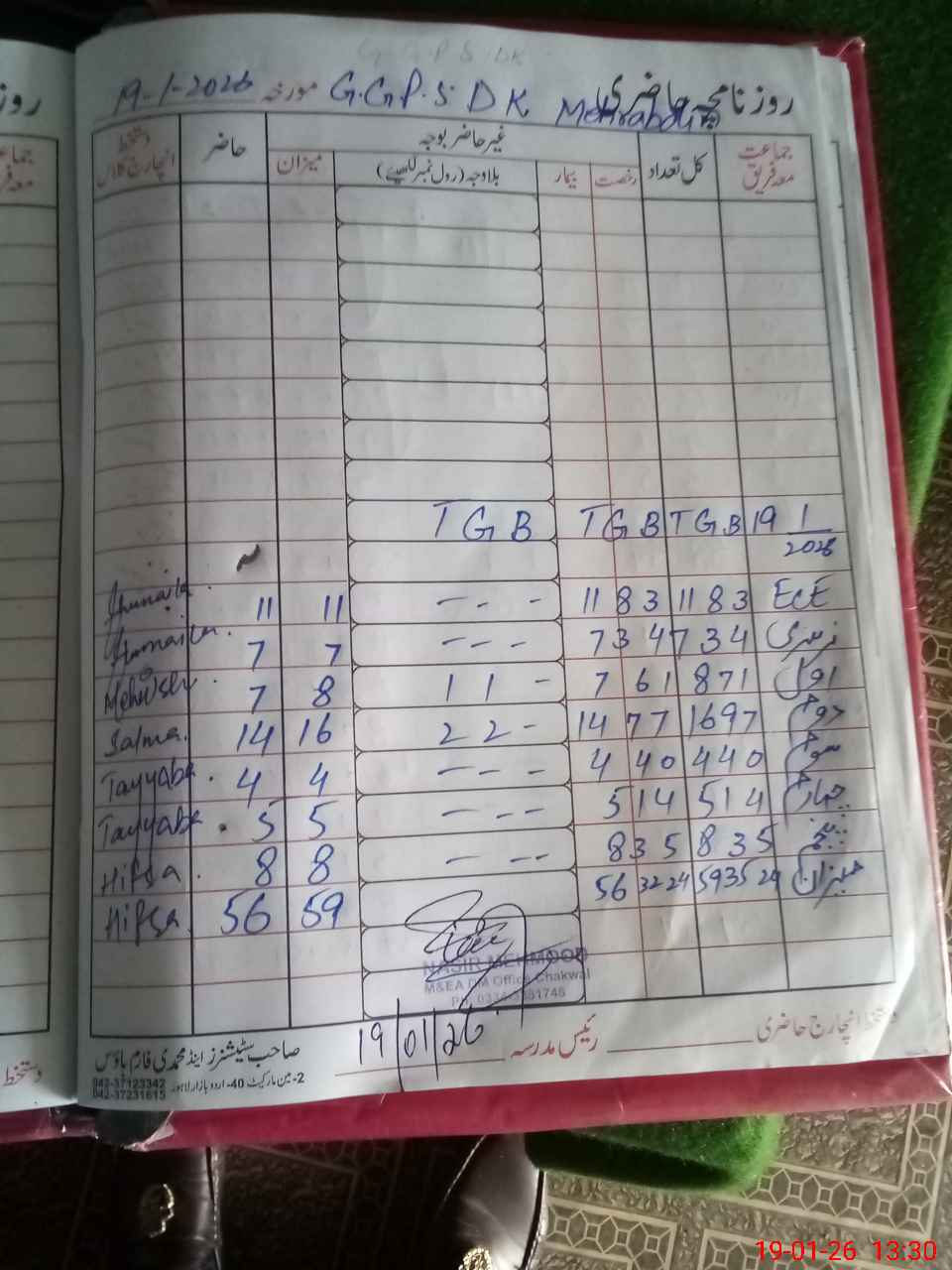 | Name: Hi**** Si**** Designation: (School Headmaster's/Headmistress's) HEADMISTRESS Phone/Cell Number: 03**** |