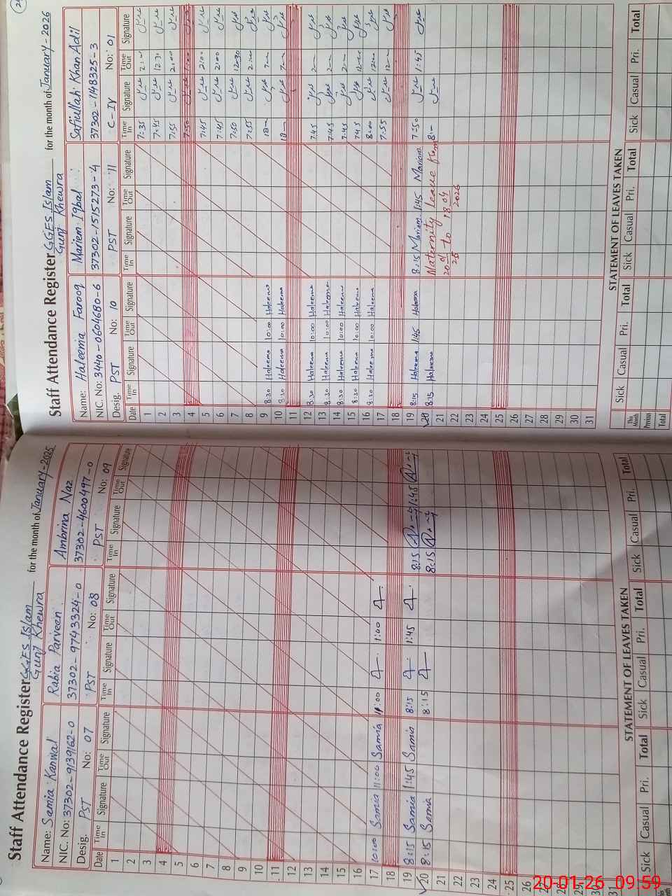 | CNIC | Full Name | Designation | R/C | Absence During Last Calender Month |