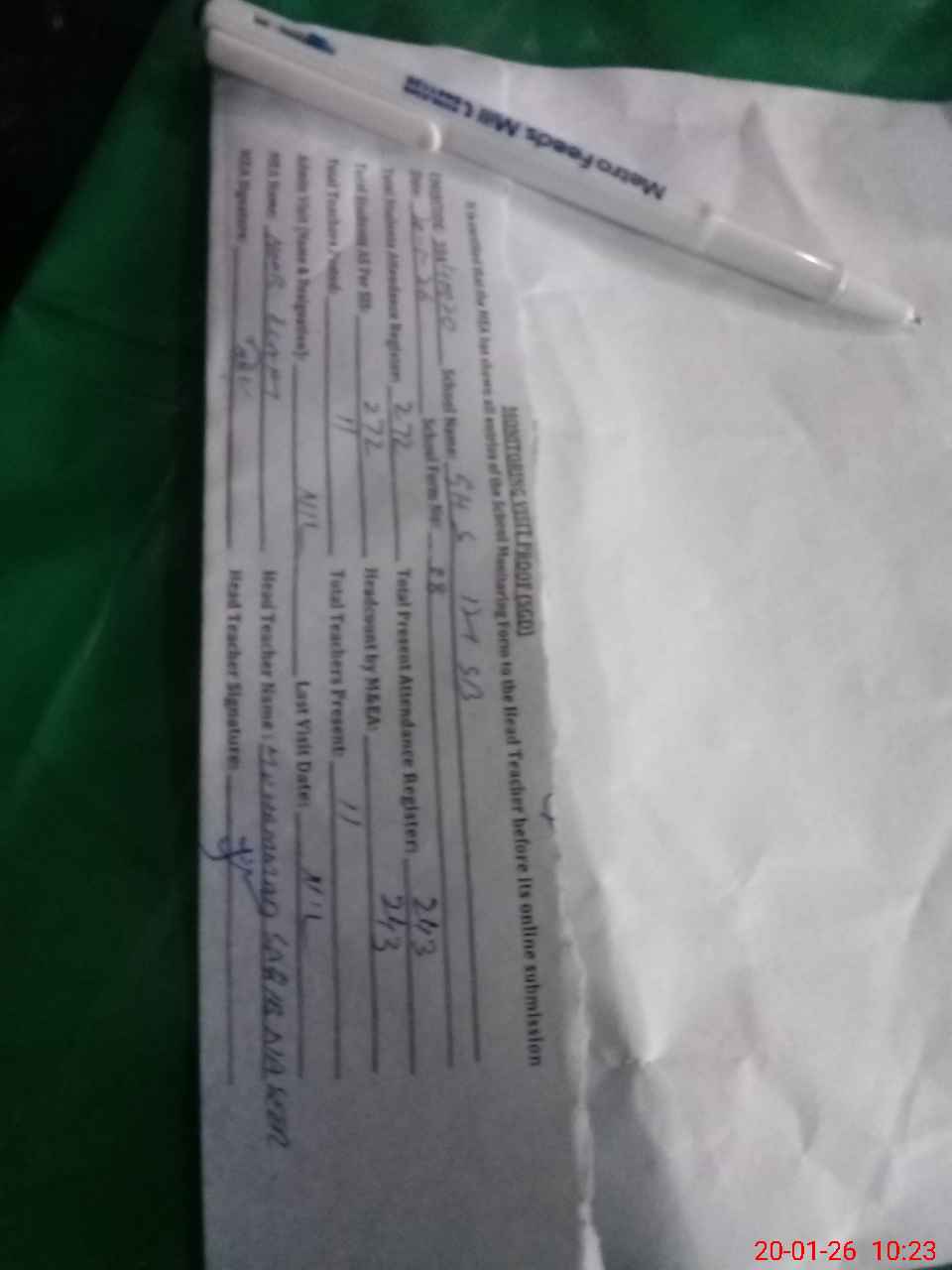 | Attendance Register | Head Teacher | MEA with School | Visit Proof |