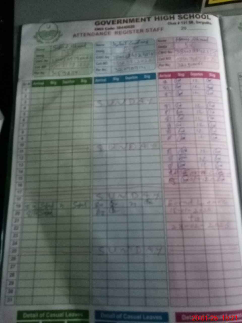 | CNIC | Full Name | Designation | R/C | Absence During Last Calender Month |