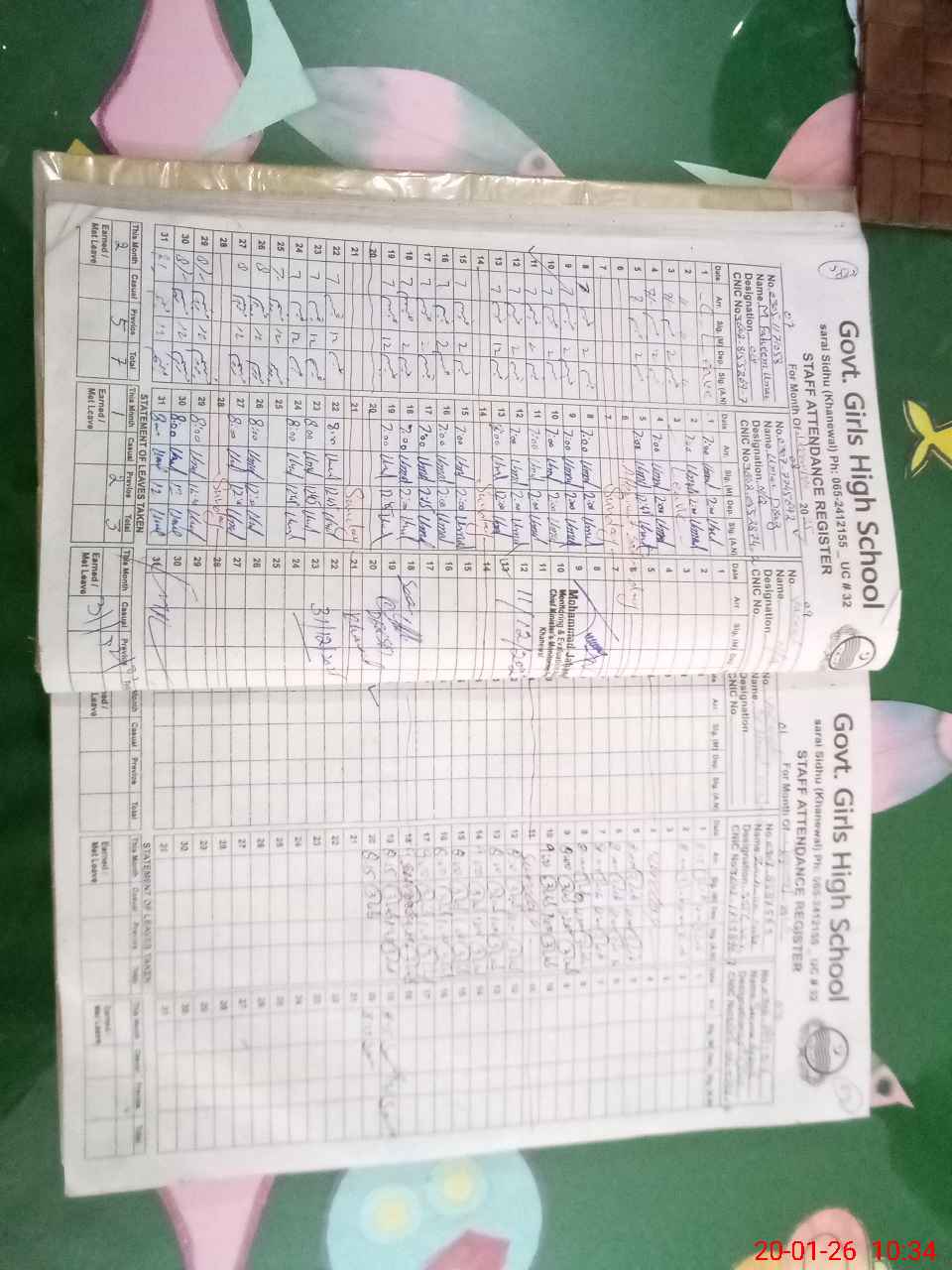 | CNIC | Full Name | Designation | R/C | Absence During Last Calender Month |