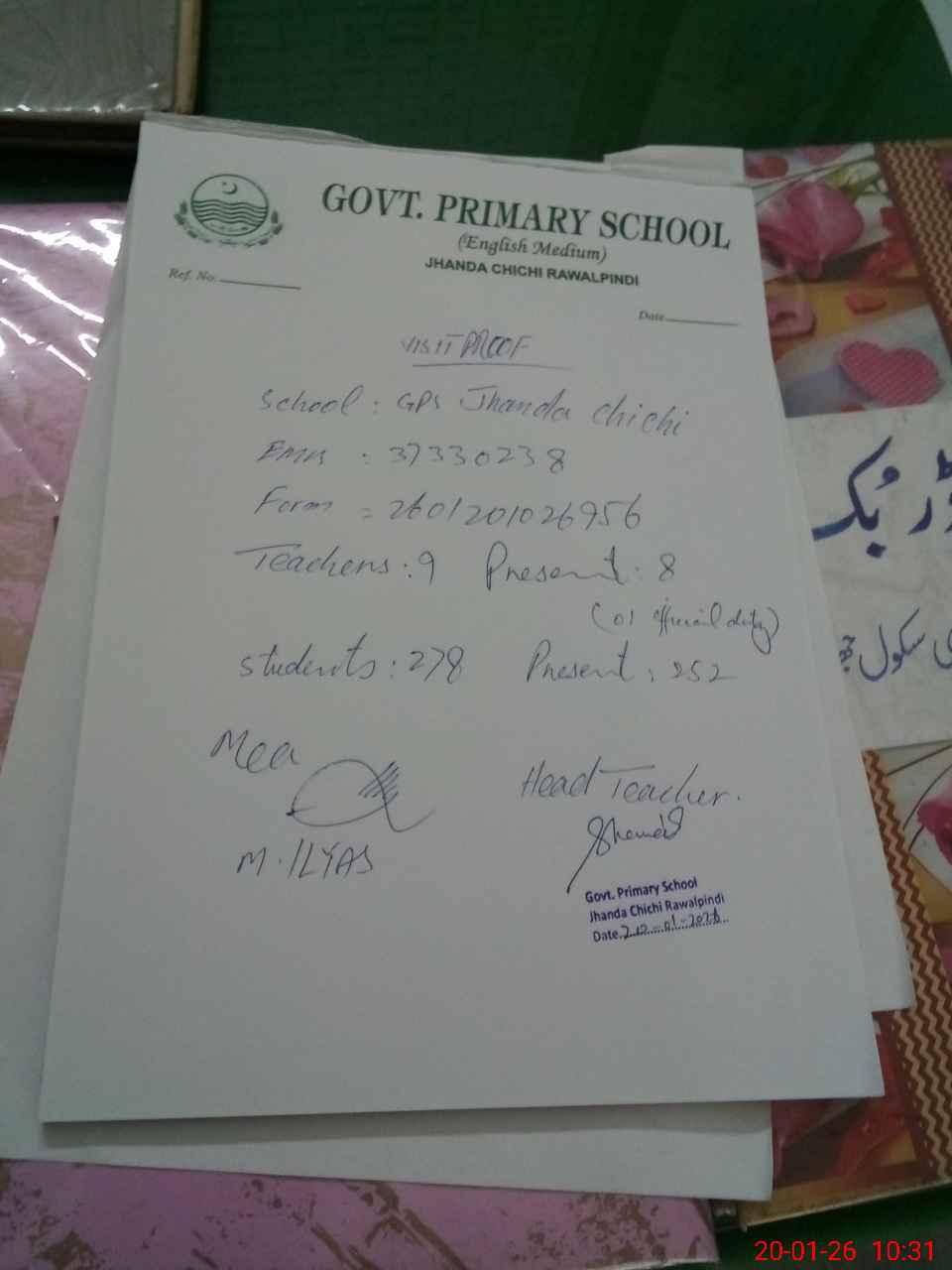 | EMIS Code: 37330238 | Name of School: GPS JHANDA CHICHI | |||