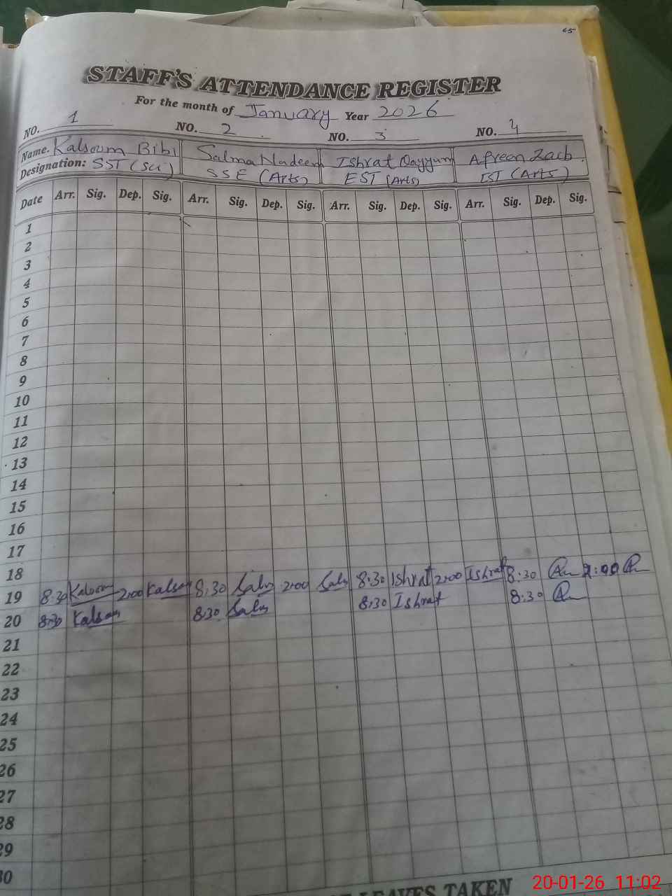 | Monitoring Date: 20-01-2026 | Start Time: 20-01-2026 10:59 AM | End Time: 20-01-2026 11:32 AM | Name of MEA: Za**** Me**** | |