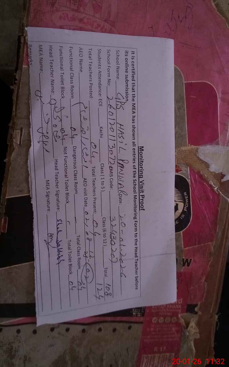 | EMIS Code: 32430207 | Name of School: GPS HASIL PANWAR | |||