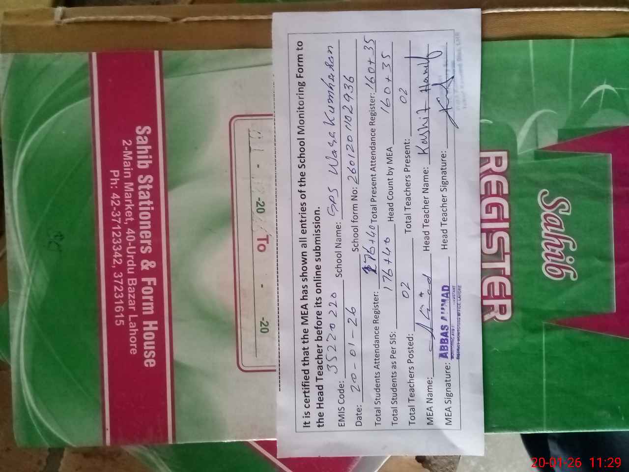 | EMIS Code: 35220220 | Name of School: GPS WARA KUMHARAN | |||