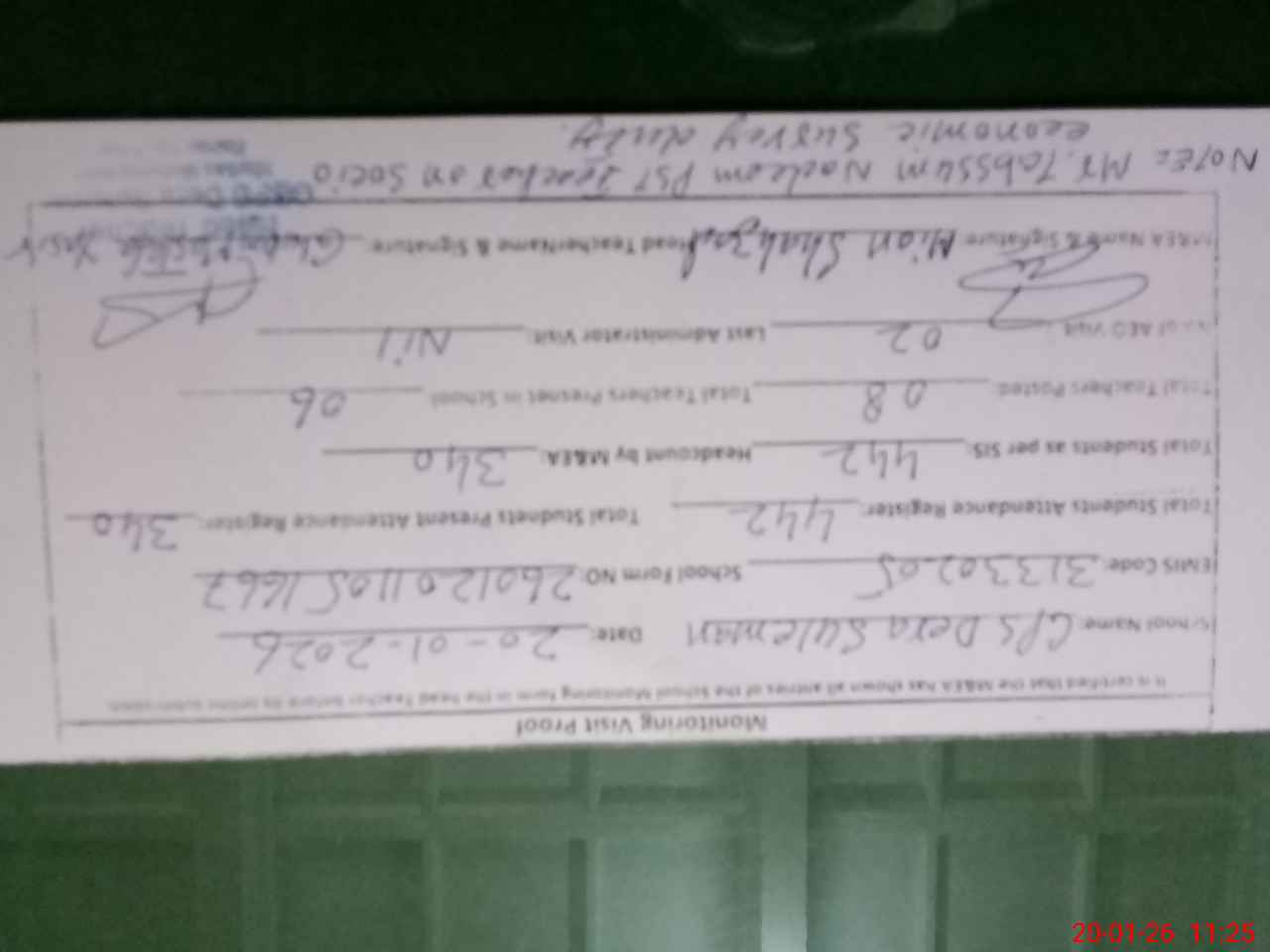 | Attendance Register | Head Teacher | MEA with School | Visit Proof |