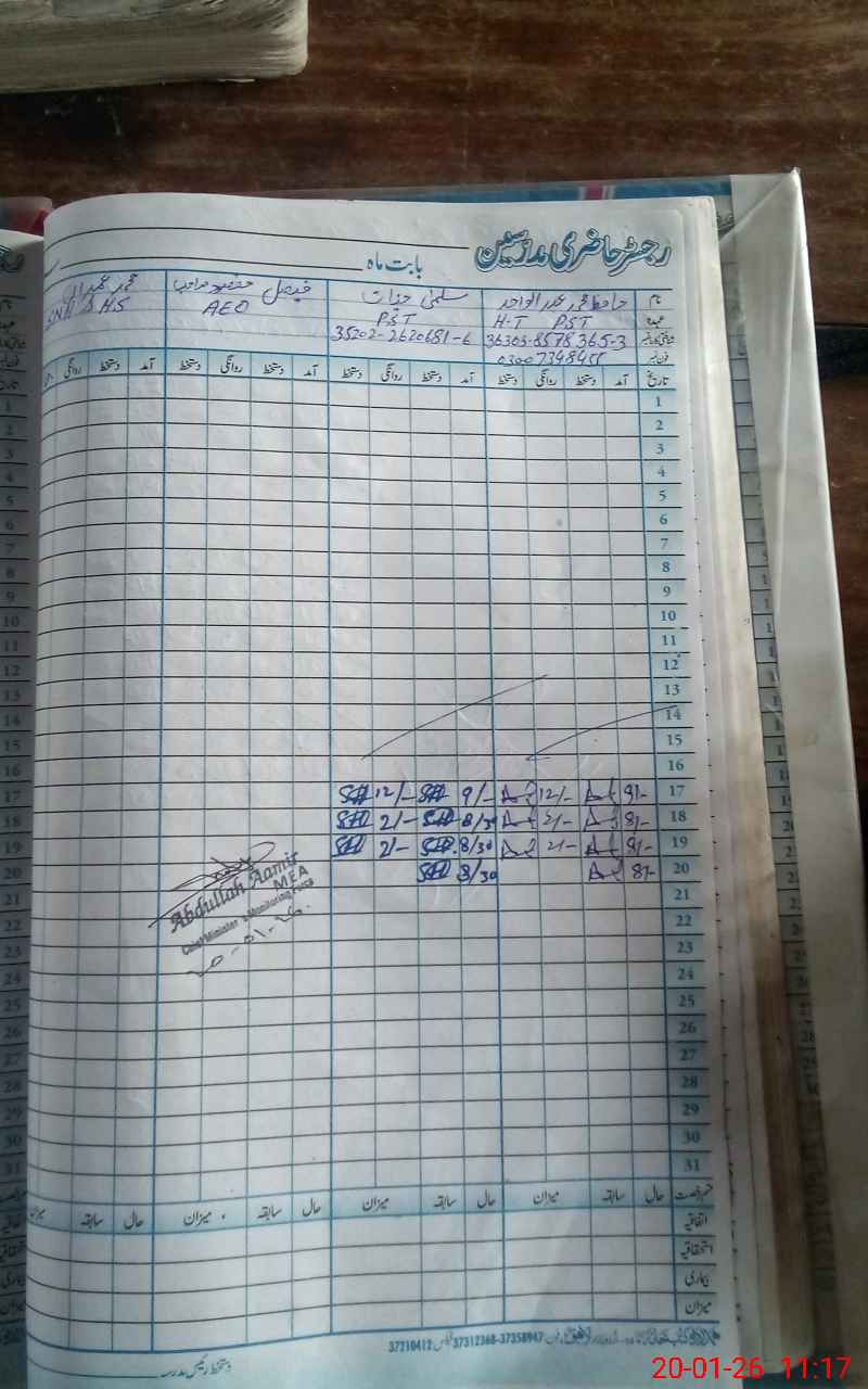 | Name: Ha**** MAb**** Wa**** Designation: (School Headmaster's/Headmistress's) HEADMASTER Phone/Cell Number: 03**** |