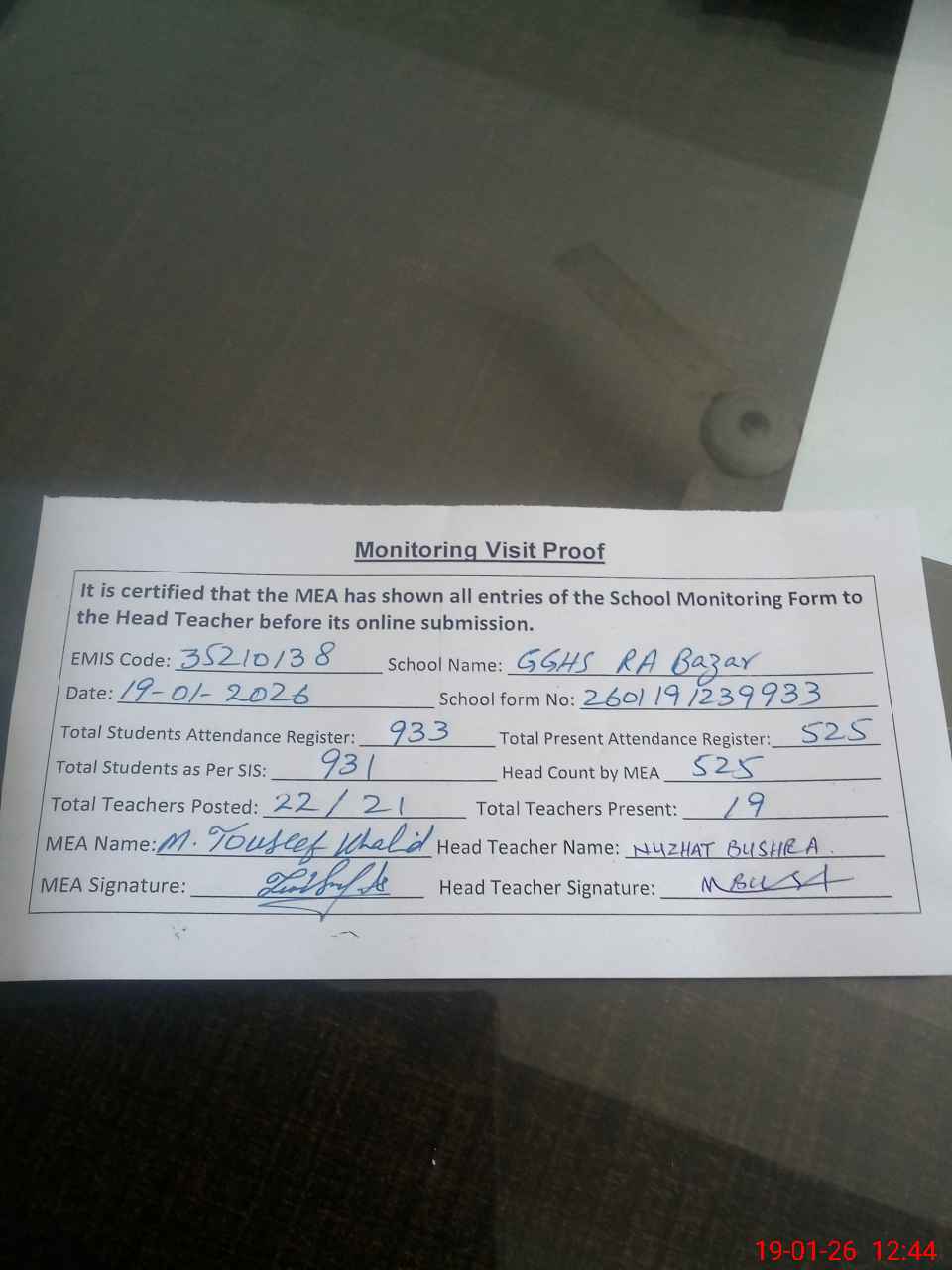 | EMIS Code: 35210138 | Name of School: GGHS R.A. BAZAR | |||