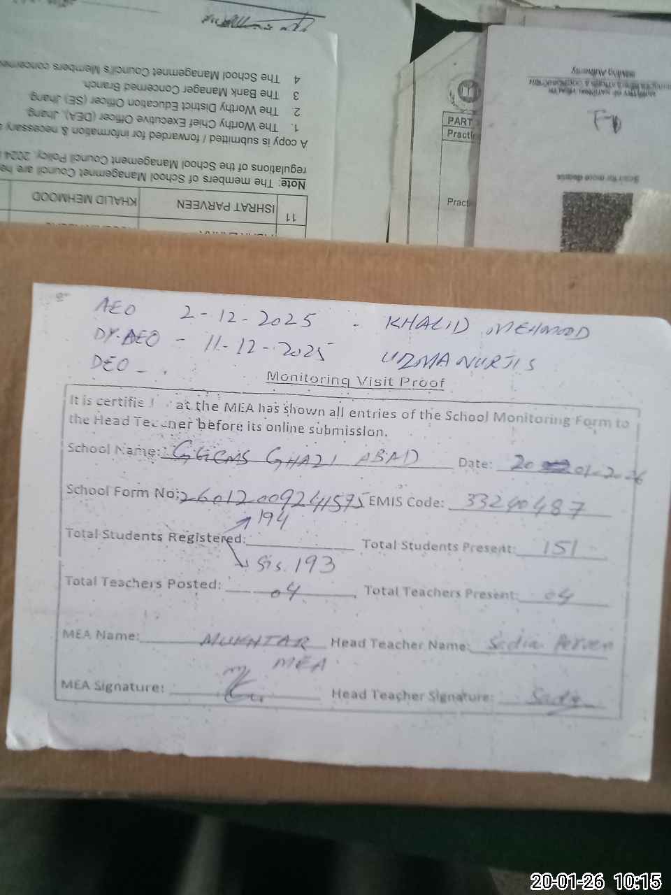 | EMIS Code: 33240487 | Name of School: GGCMS GHAZI ABAD ABDULLAH PUR | |||