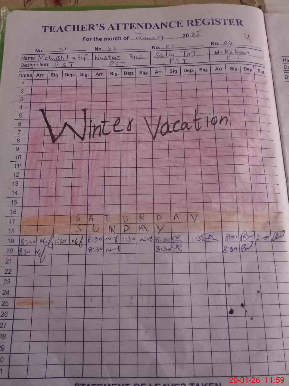 | Monitoring Date: 20-01-2026 | Start Time: 20-01-2026 11:49 AM | End Time: 20-01-2026 12:11 PM | Name of MEA: Za**** Me**** | |