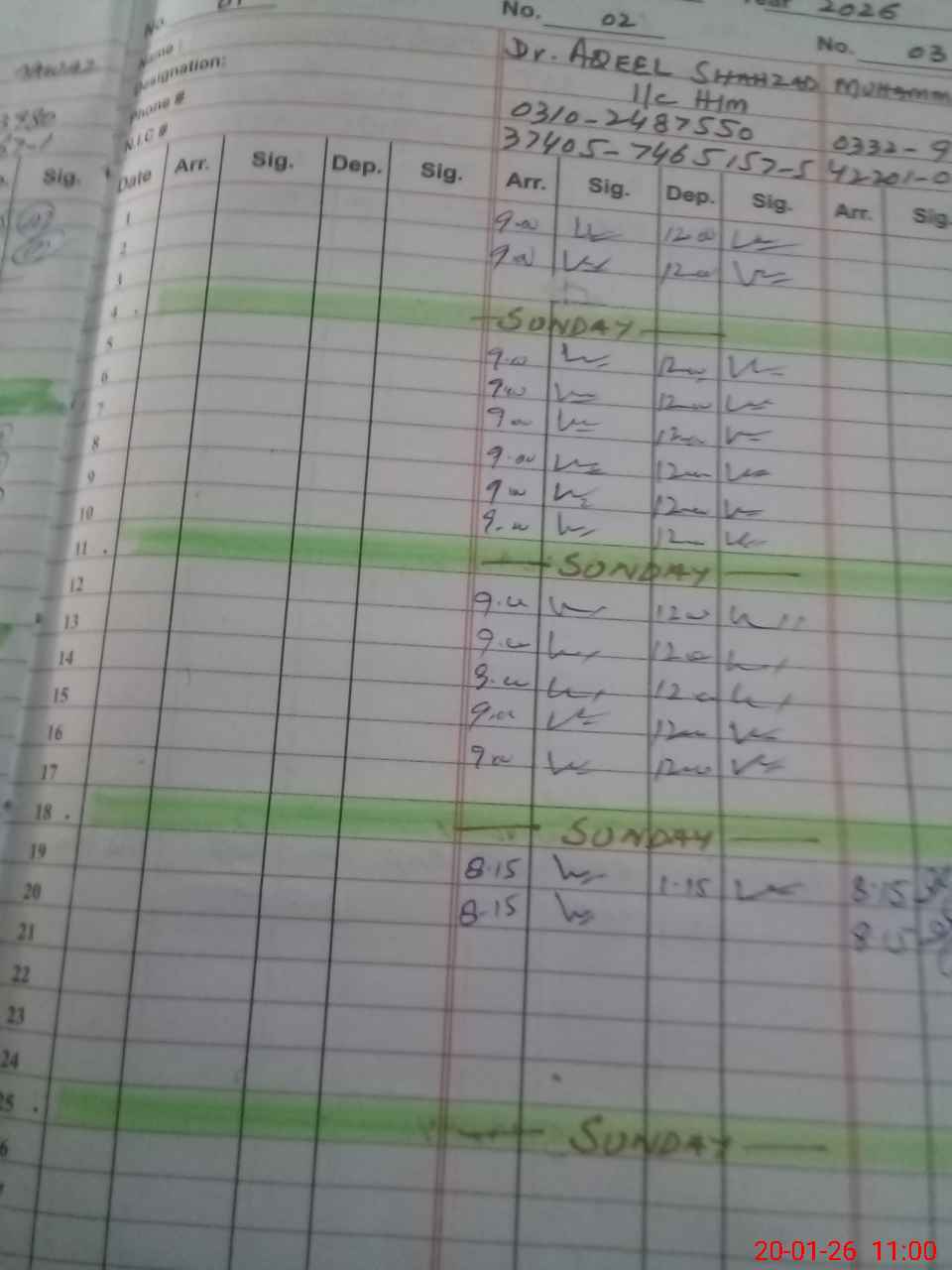 | CNIC | Full Name | Designation | R/C | Absence during last cal. month |