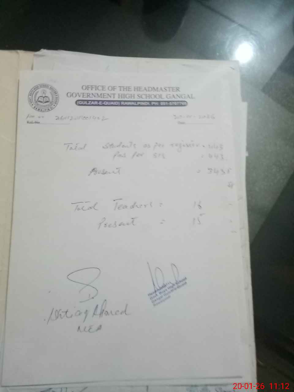 | Name: Qa**** Me**** Designation: (School Headmaster's/Headmistress's) HEADMASTER Phone/Cell Number: 03**** |