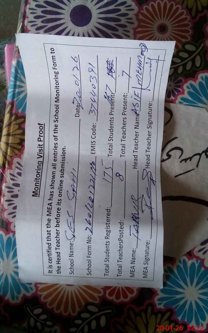 | Attendance Register | Head Teacher | MEA with School | Visit Proof |