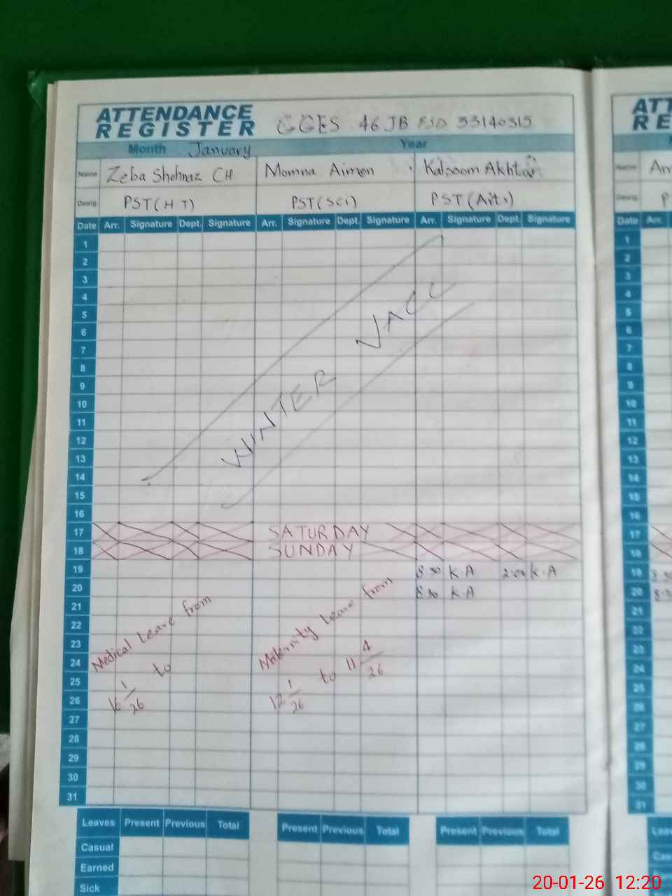 | 33**** | Mo**** Ai**** | PST Science/Maths | Regular | 0 | 0 | 0 | 0 | 0 | 0 | 0 | 0 | 0 | Maternity |