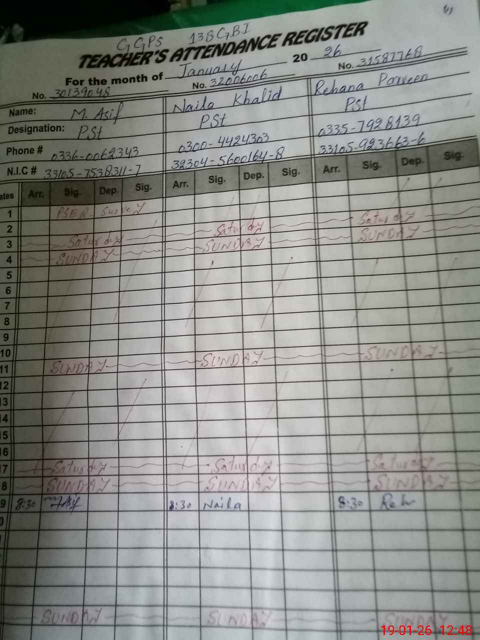 | Name: MU**** AS**** Designation: (School Headmaster's/Headmistress's) PST Phone/Cell Number: 03**** |