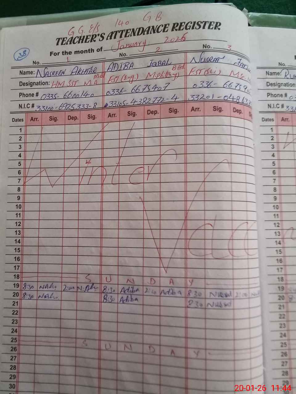 | Name: NA**** AK**** Designation: (School Headmaster's/Headmistress's) SST (GENERAL) Phone/Cell Number: 03**** |