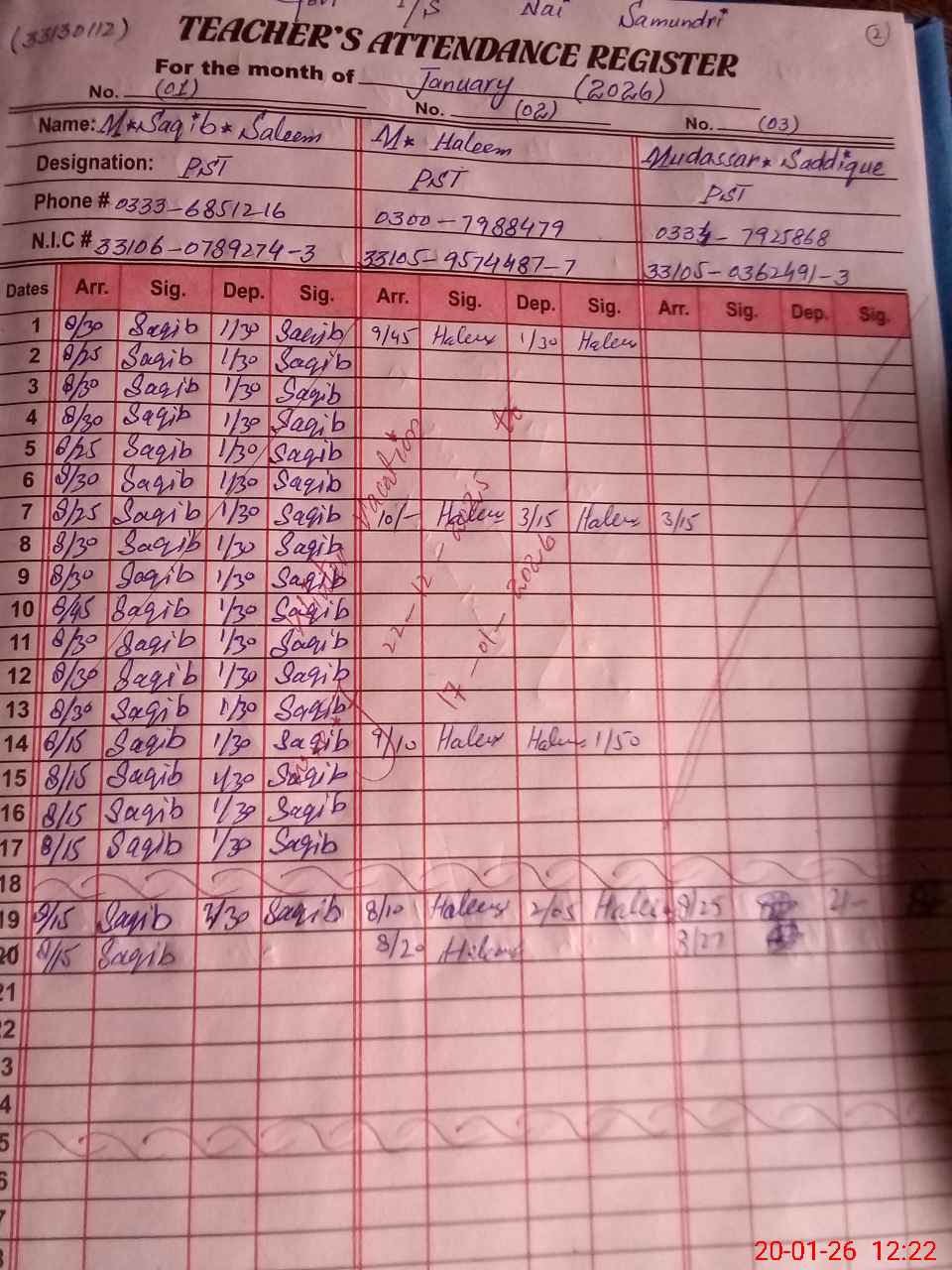 | Name: MU**** SA**** SA**** Designation: (School Headmaster's/Headmistress's) PST Phone/Cell Number: 03**** |