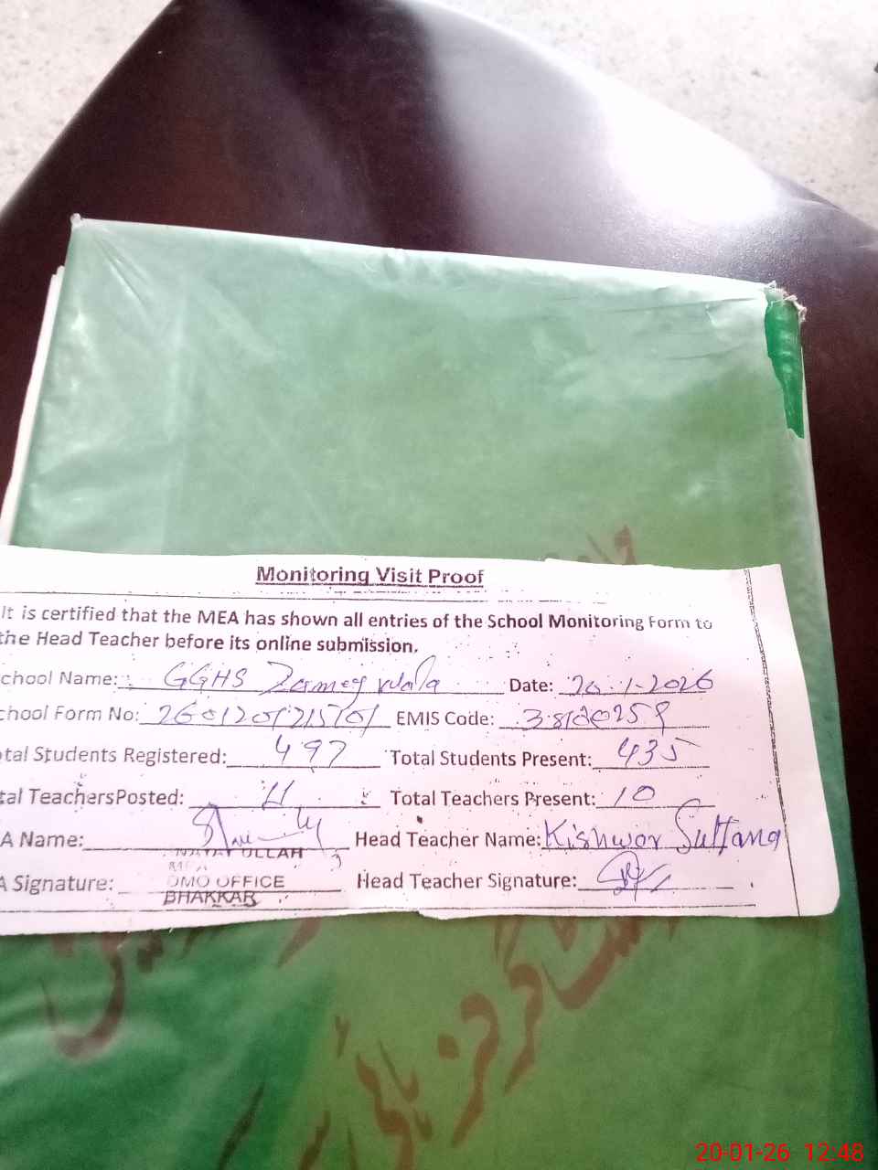 | EMIS Code: 38120259 | Name of School: GGHS ZAMMY WALA | |||