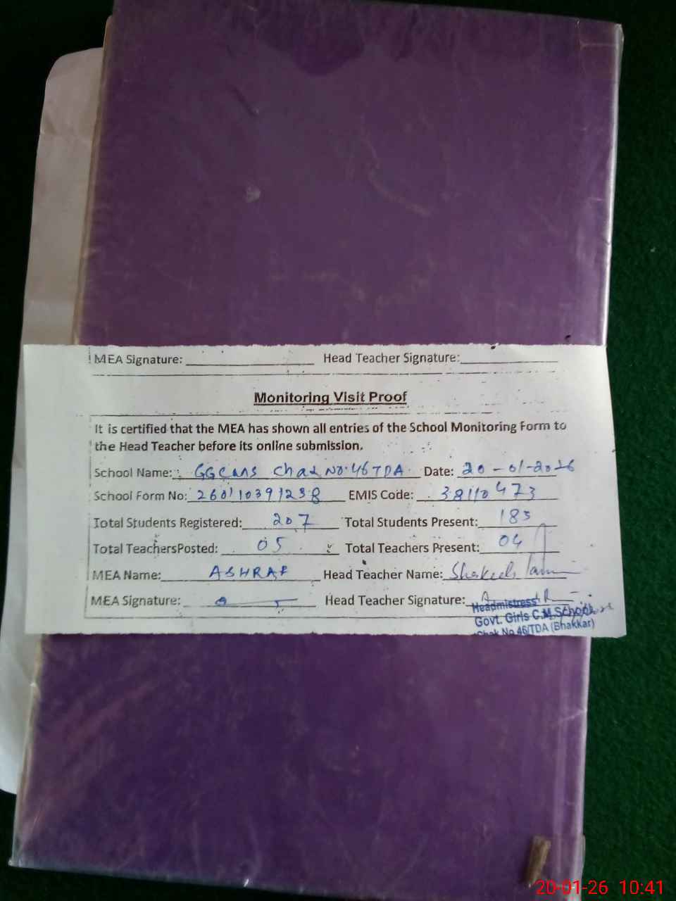 | EMIS Code: 38110473 | Name of School: GGCMS CHAK NO.46 TDA BHAKKAR | |||