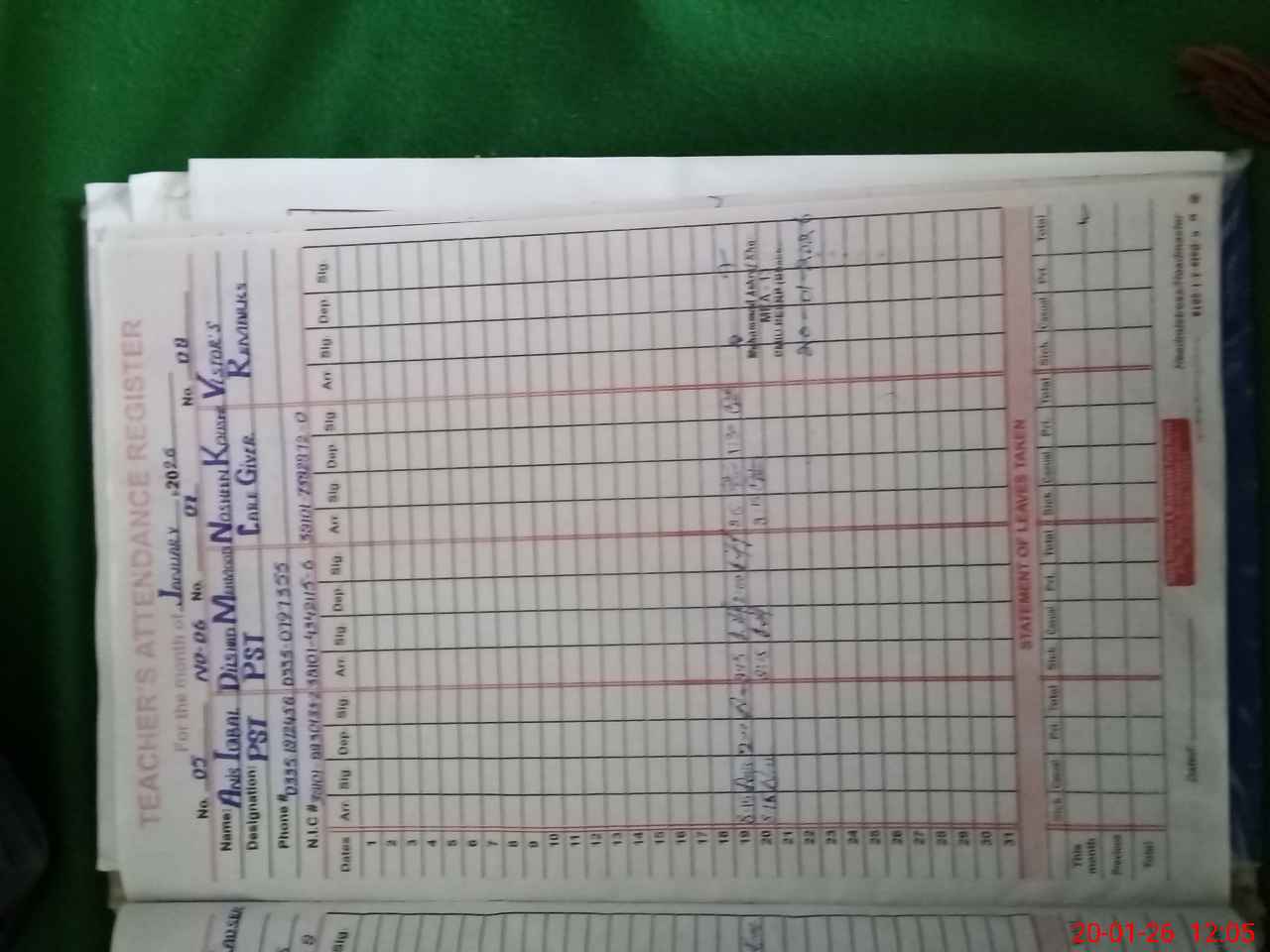 | Name: Mu**** Iq**** Designation: (School Headmaster's/Headmistress's) Pst Phone/Cell Number: 03**** |