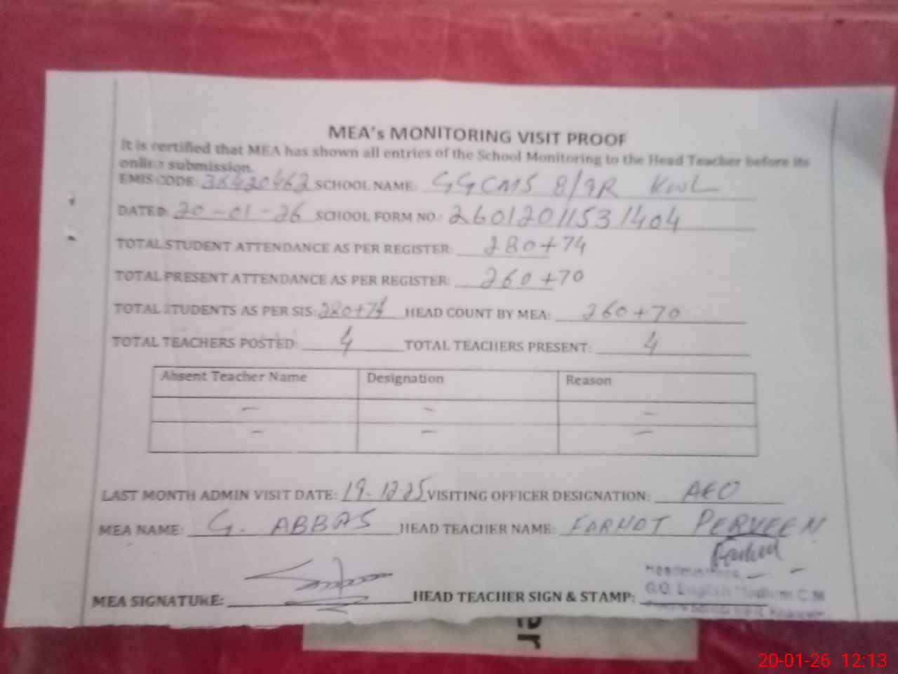 | EMIS Code: 36420462 | Name of School: GGCMS 8/9-R KACHA KHUH | |||