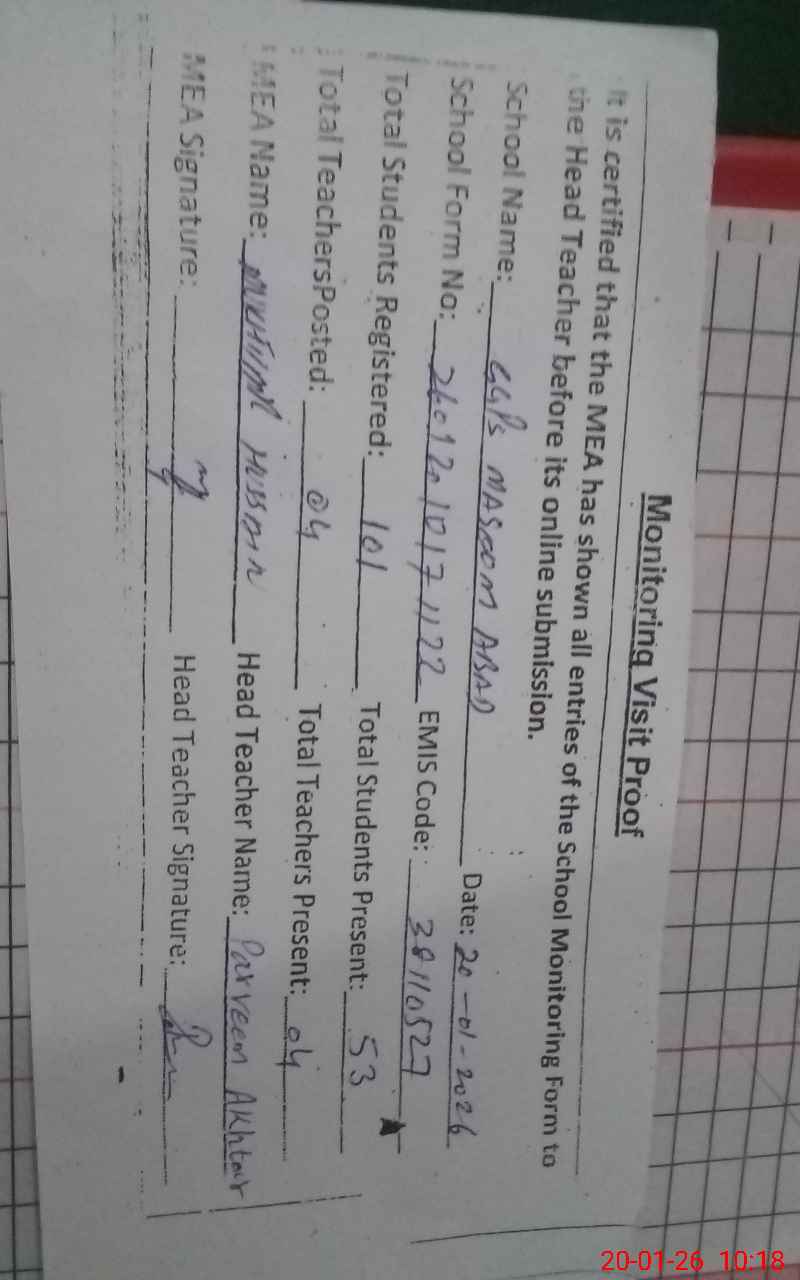 | EMIS Code: 38110527 | Name of School: GGPS MASOOM ABAD | |||