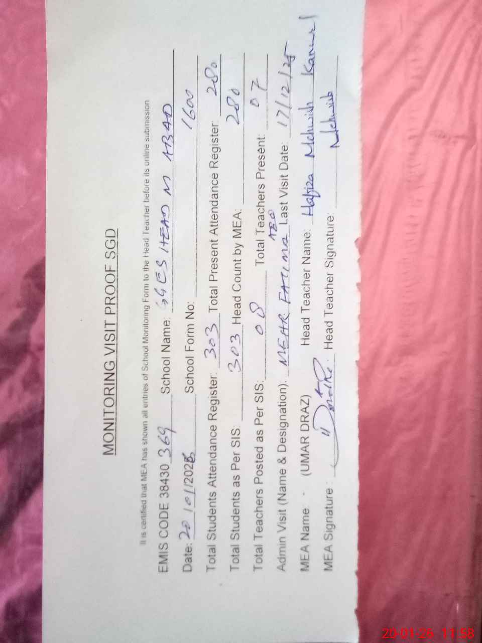 | EMIS Code: 38430369 | Name of School: GGES HEAD MUHAMMAD ABAD (Azad Colony) | |||